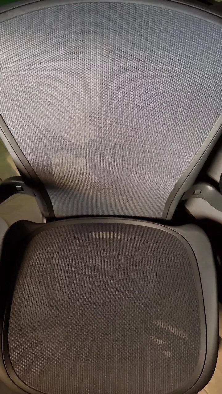 ※アーロンチェアは体重150kgまで対応しています。サイズの見分け方:背面のハーマンミラーロゴの点の数で確認できます(1つ=A、2つ=B、3つ=C)。