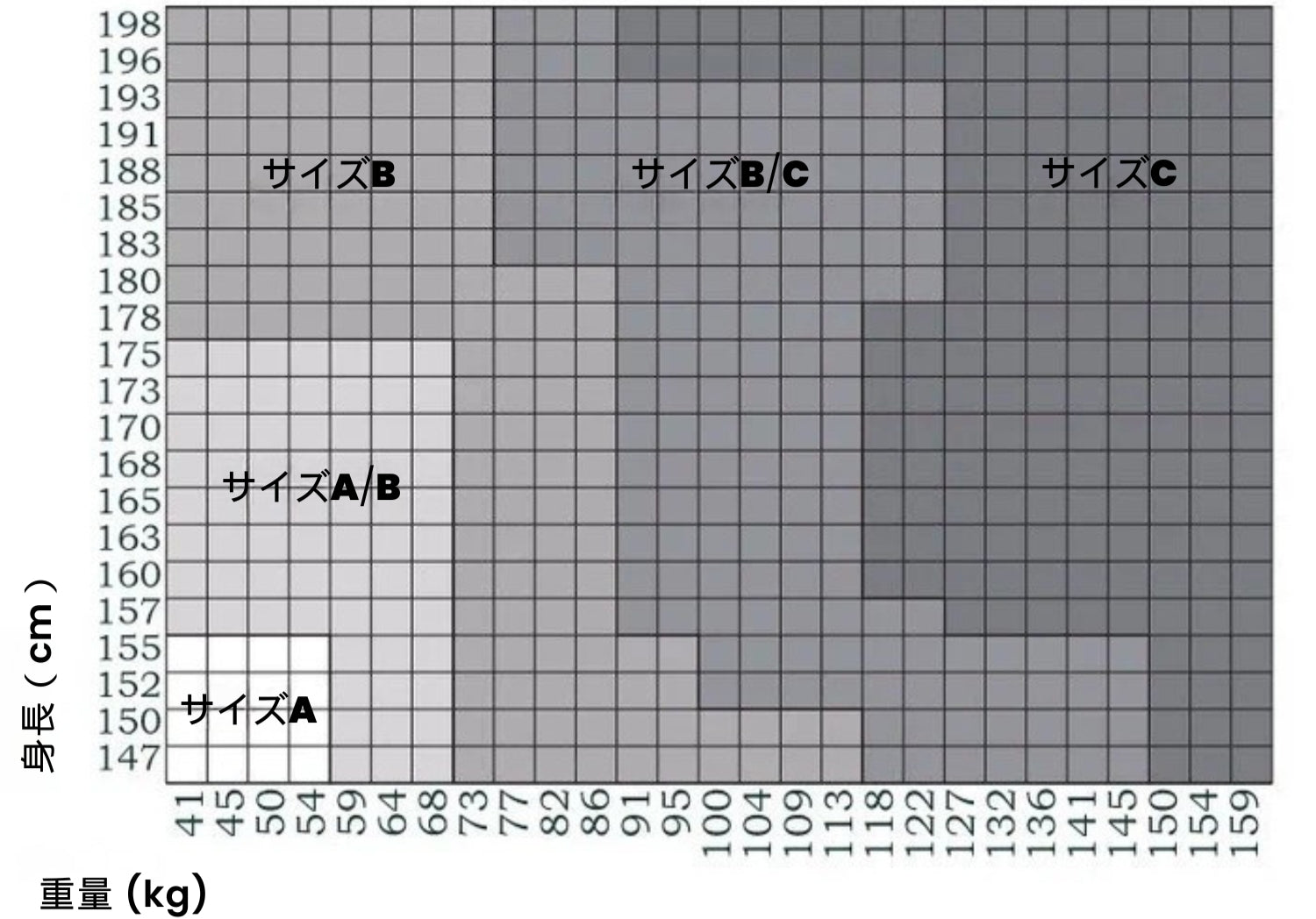 サイズC 身長195cm以上、体重130kg以下の方向け。背が高くがっしりした体格の方に最適。